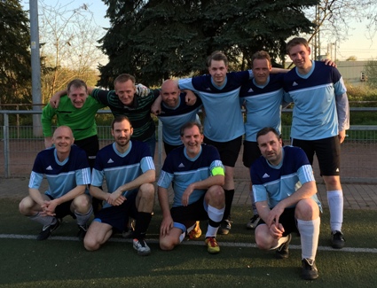Diese Mannschaft schaffte 2014 die KF3-Klasse punktverlustfrei zu gewinnen und in die KF2 aufzusteigen (v.l.n.r.) stehend: Nof, Udo, Jörg, Sebi, Olav, Simon. Hockend: Claudius, Max, Rainer, Wolle. (Auf dem Bild fehlen: Moritz, Dennis, Volker)